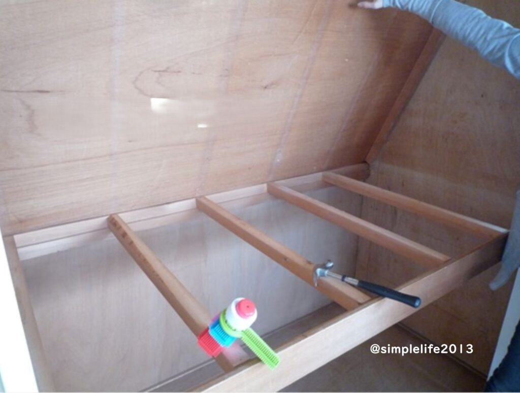 まずは扉を外して上の段の物を全部出して、空にしました。