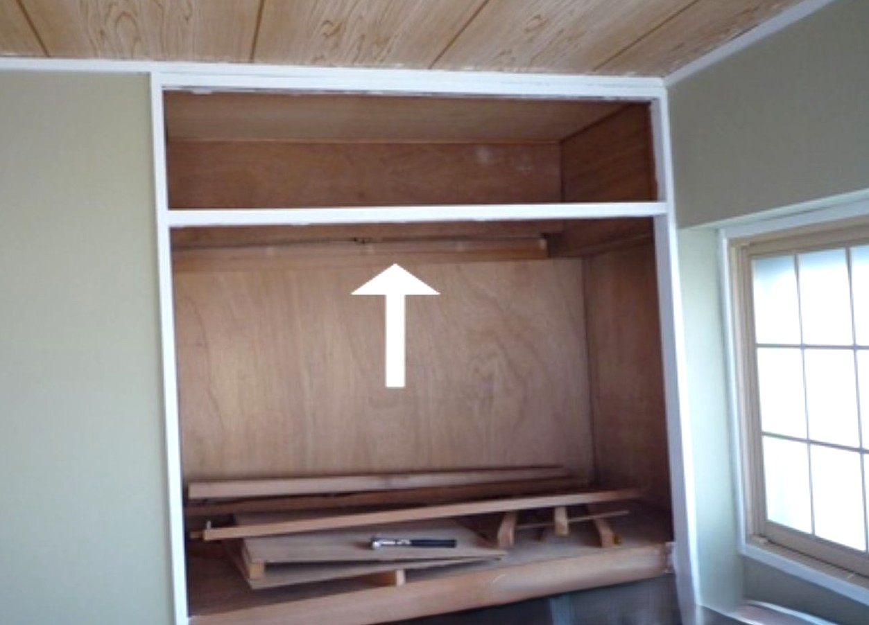中段(棚板)を支えるために、押し入れの枠に固定されている“受け”の木。