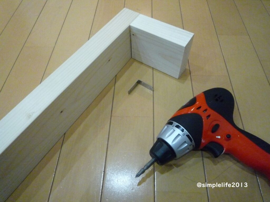 木材をコの字っぽく囲うように組んで、L字金具で固定。